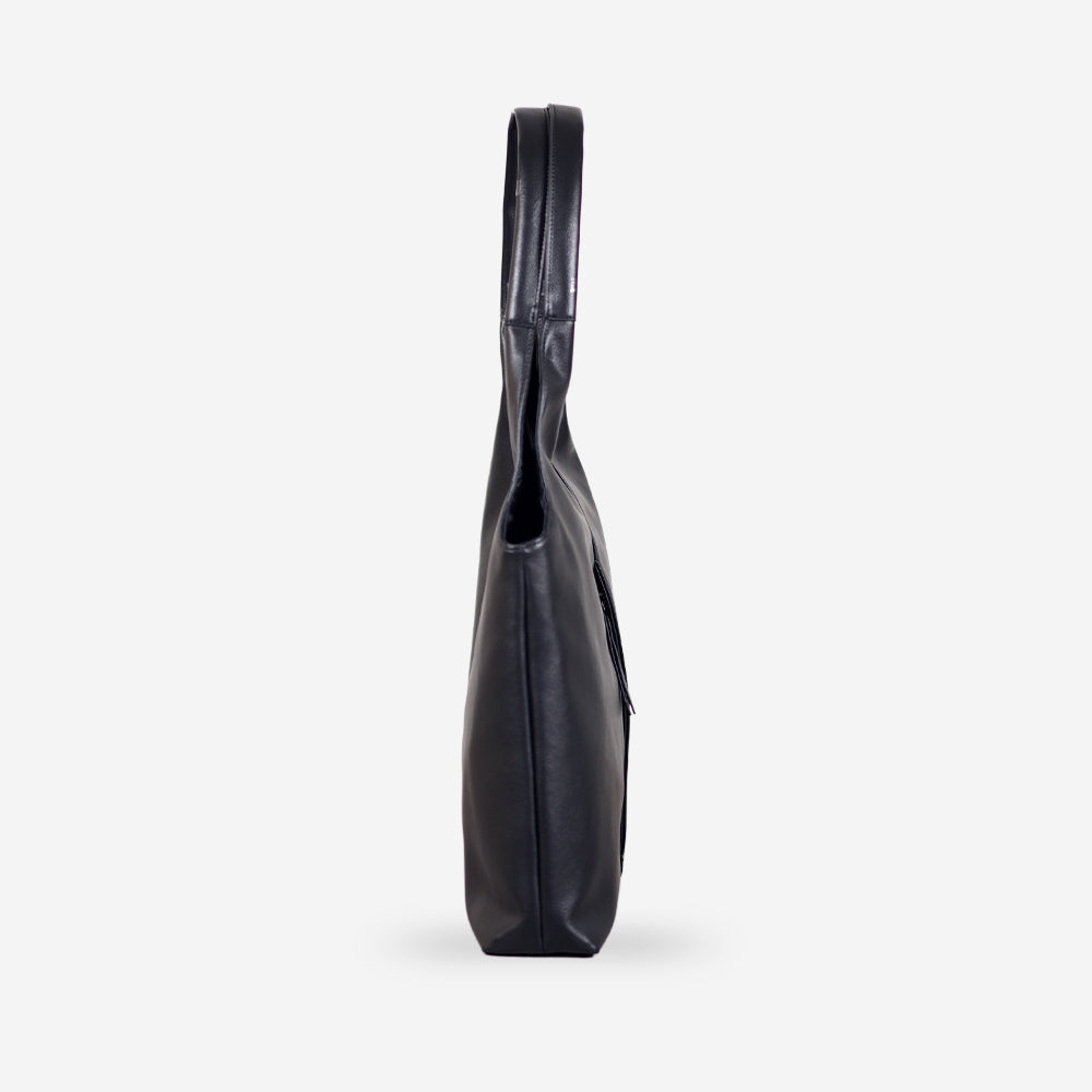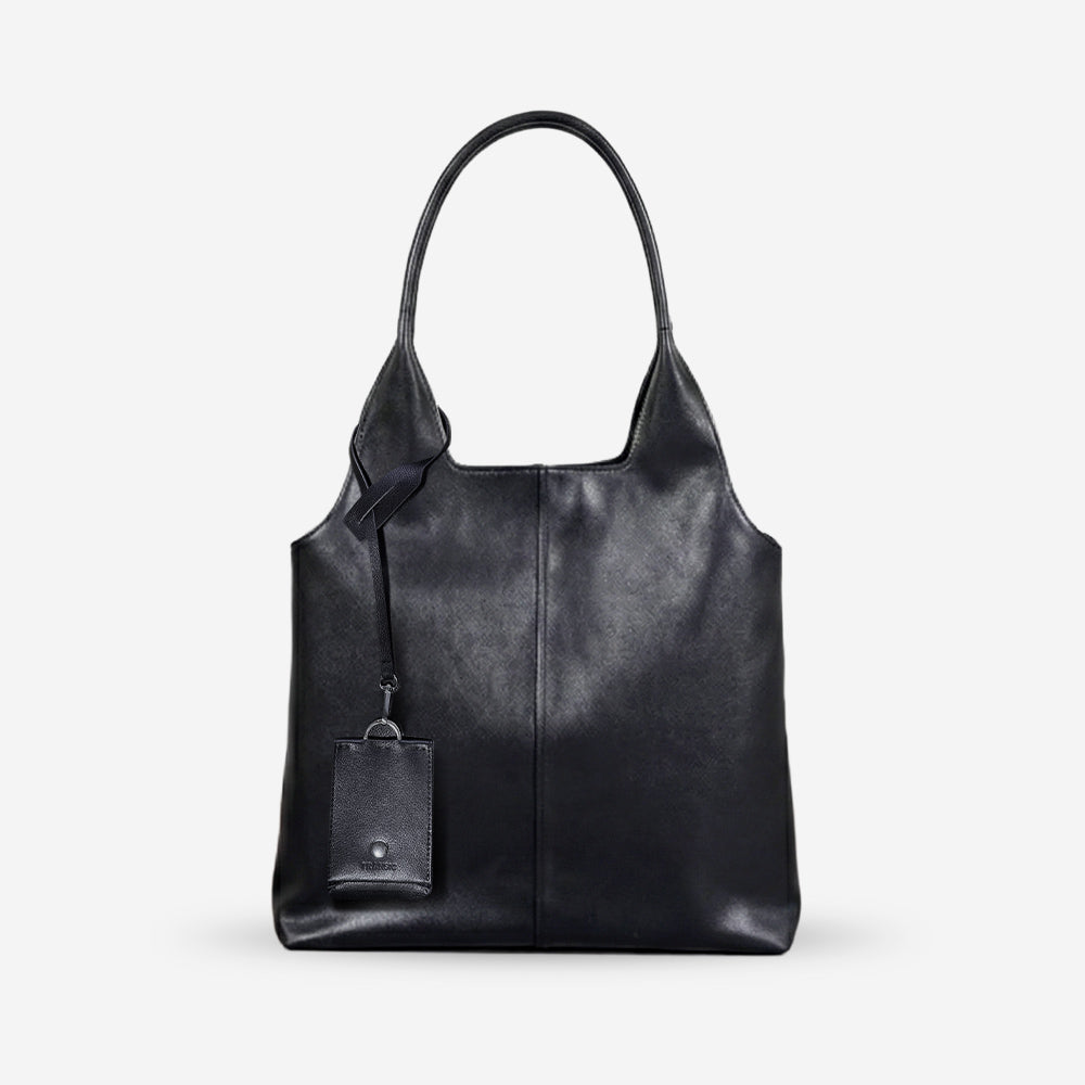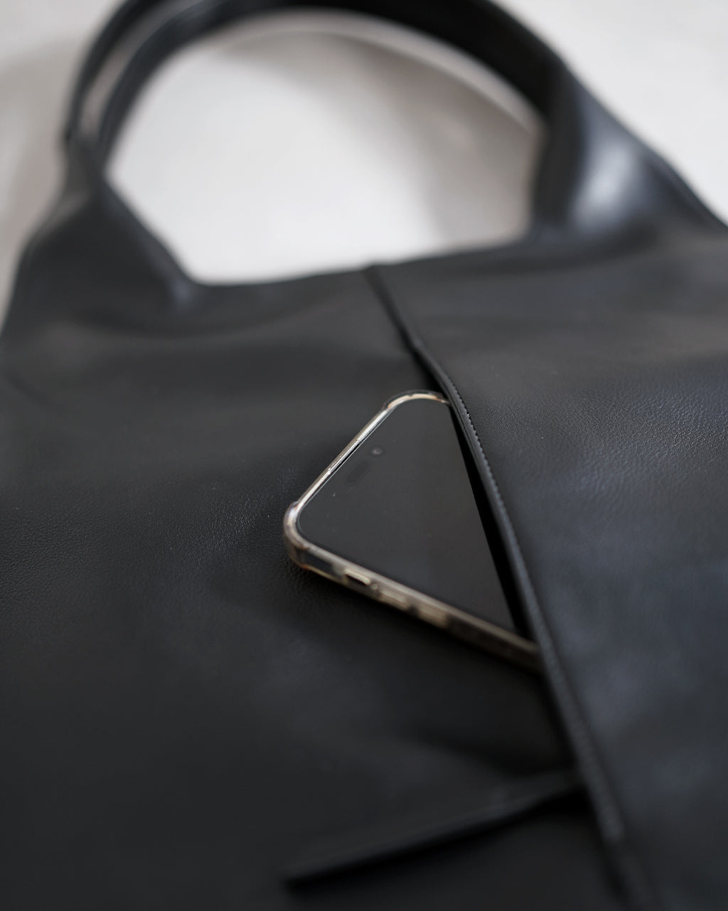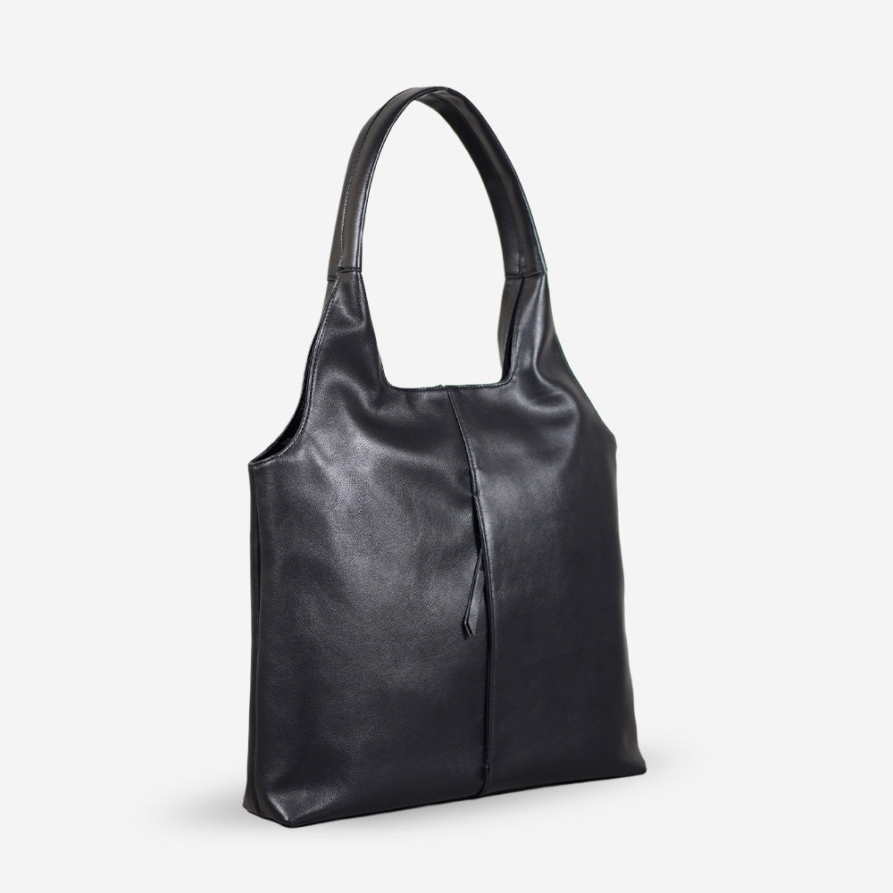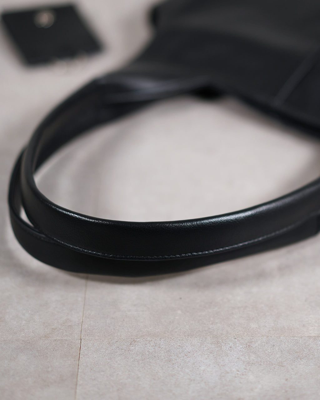 スーツやジャケットに似合う、縦長でスマートなシルエットの本革ビジネストートバッグ。 外装はシンプルでミニマルなデザインに仕上げ、本革ならではの上質さと高級感を引き立てました。ハンドルは、手持ち・肩掛けの両対応設計で、通勤から出張まで幅広く活躍します。素材には、柔らかく手触りの良いスムース本革を採用。防水加工を施しているため、雨の日もケアレスで使用できます。本革でありながら軽量設計で、毎日の持ち運びも快適です。内装には撥水ナイロンを使用し、ドリンクの結露や雨による浸水も防止。15インチPC・A4書類が収納可能で、1〜2泊の出張にも対応する収納力を備えています。