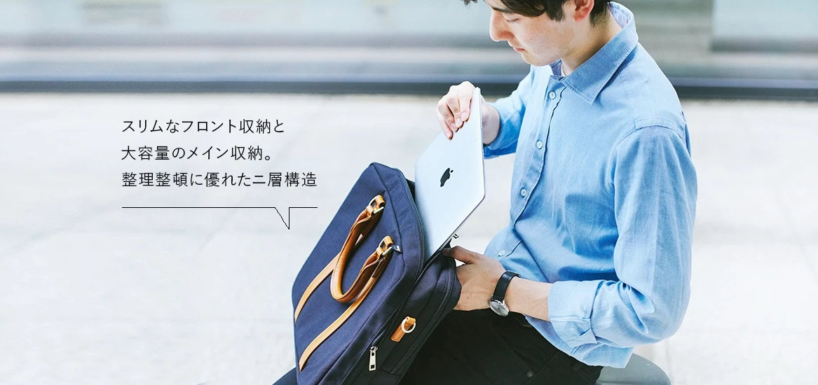 "ビジネスでも大活躍のPCホルダー付、品格と機能面を併せ持つ大人ショルダー"