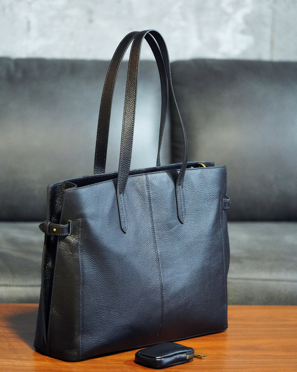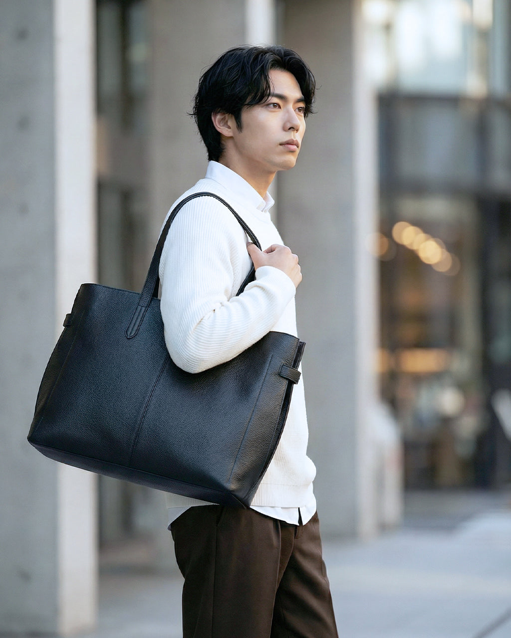プレゼンや商談などの多い、30〜50代のビジネスパーソン向けに設計された本革ビジネスバッグ。国内外の出張や商談など第一印象が重要な場面で使いやすく“長く使えるバッグ”を求める方、本革の上質さを楽しみたい方に最適なブリーフトートです。